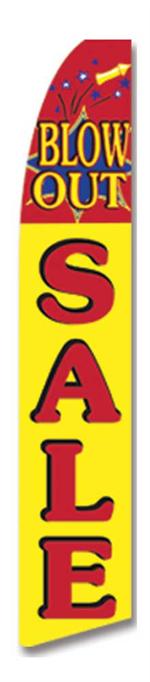 This Blowout Sale Swooper Flag, also called a feather banner, has a vibrant colored background with quality graphics/text; which makes this sign an ideal advertising banner. Each flag stands 138 inches tall by 30 inches wide.