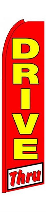 This Drive Thru Swooper Flag, also called a feather banner, has a vibrant colored background with quality graphics/text; which makes this sign an ideal advertising banner. Each flag stands 138 inches tall by 36 inches wide.